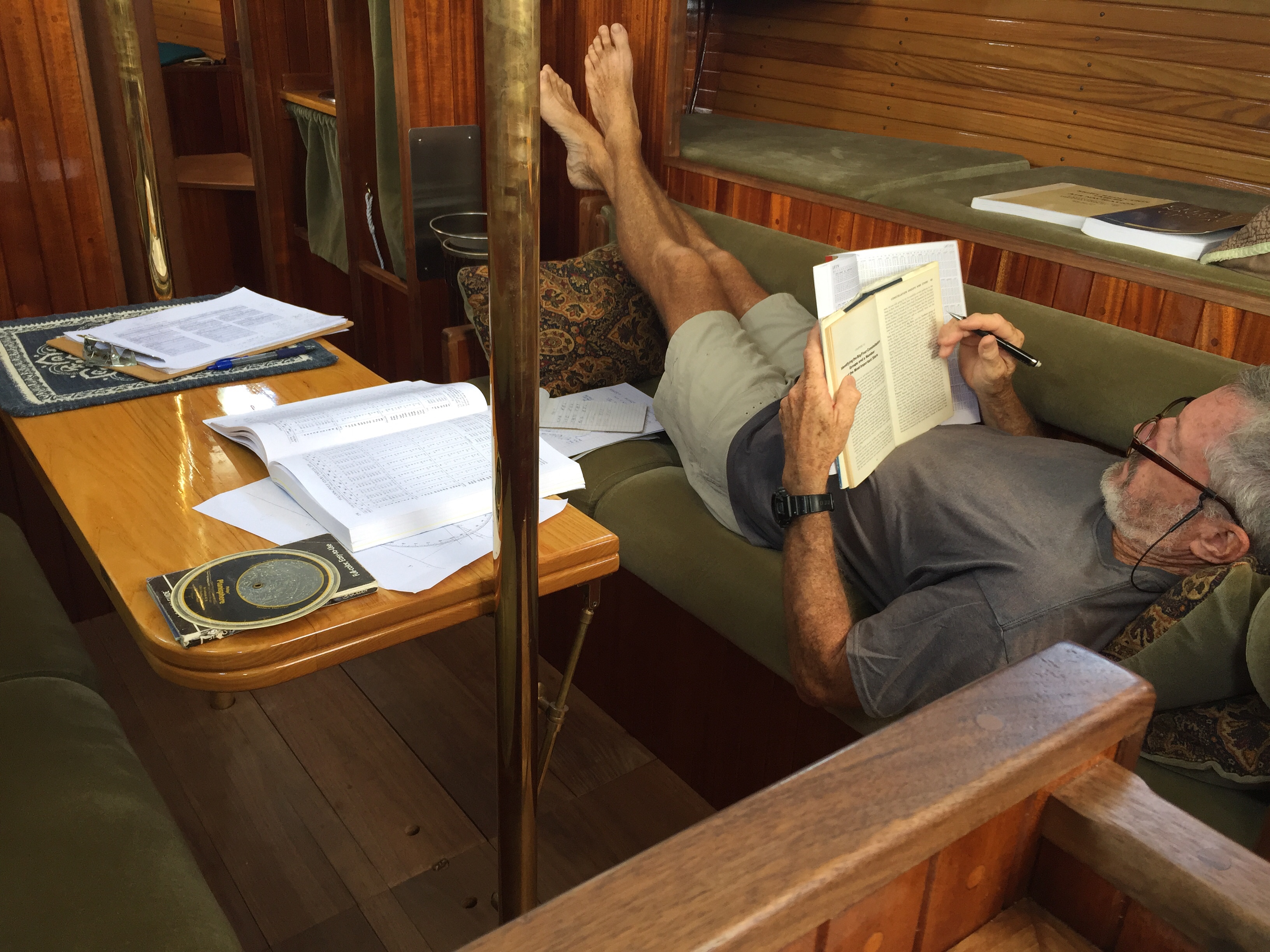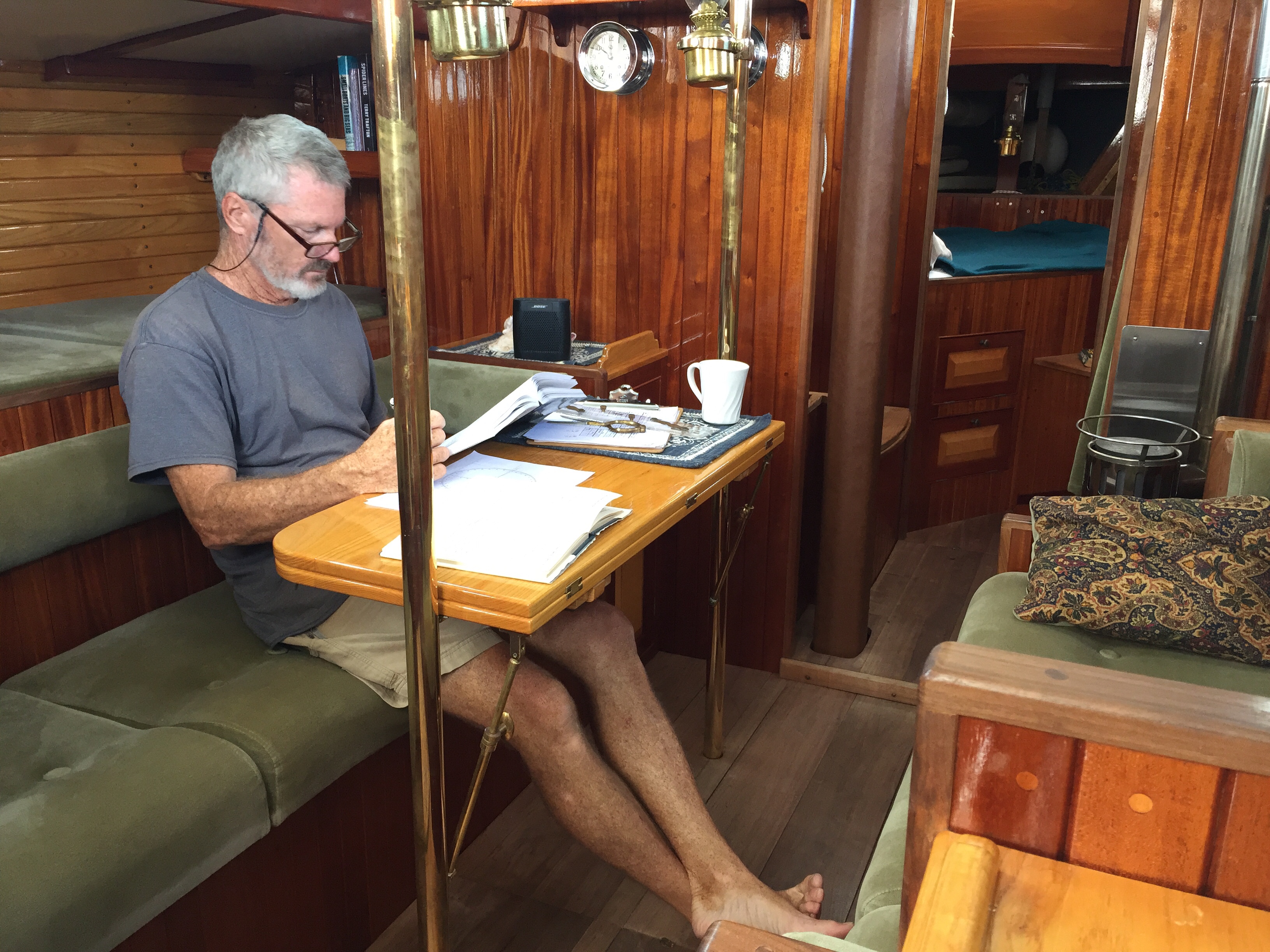 I corrected the numbers the next morning and reworked the problems. One LOP was within 1nm the other within 2nm of my position. So, it was an error easily corrected and resulted in an accurate position. But, the lesson for me—the devil’s in the details. Be damn careful with the numbers! I’ll also refine how I actually look at the thousands of numbers in the many columns and rows of data. One tip suggested to me is to read the numbers backwards. That might be a good idea. I’ll try it out.