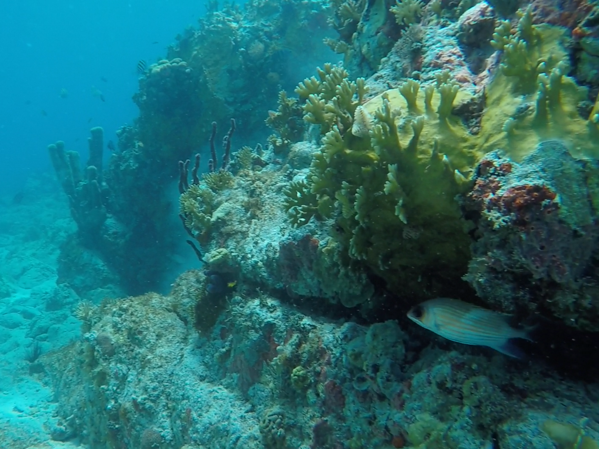 Yes, sadly there is a lot of dead coral but I focus on the beauty I see, however small and isolated it may be—tropical fish, sponges, small isolated coral, shafts of sunlight streaming through clear water generating wonderful spectrum of blue hues.