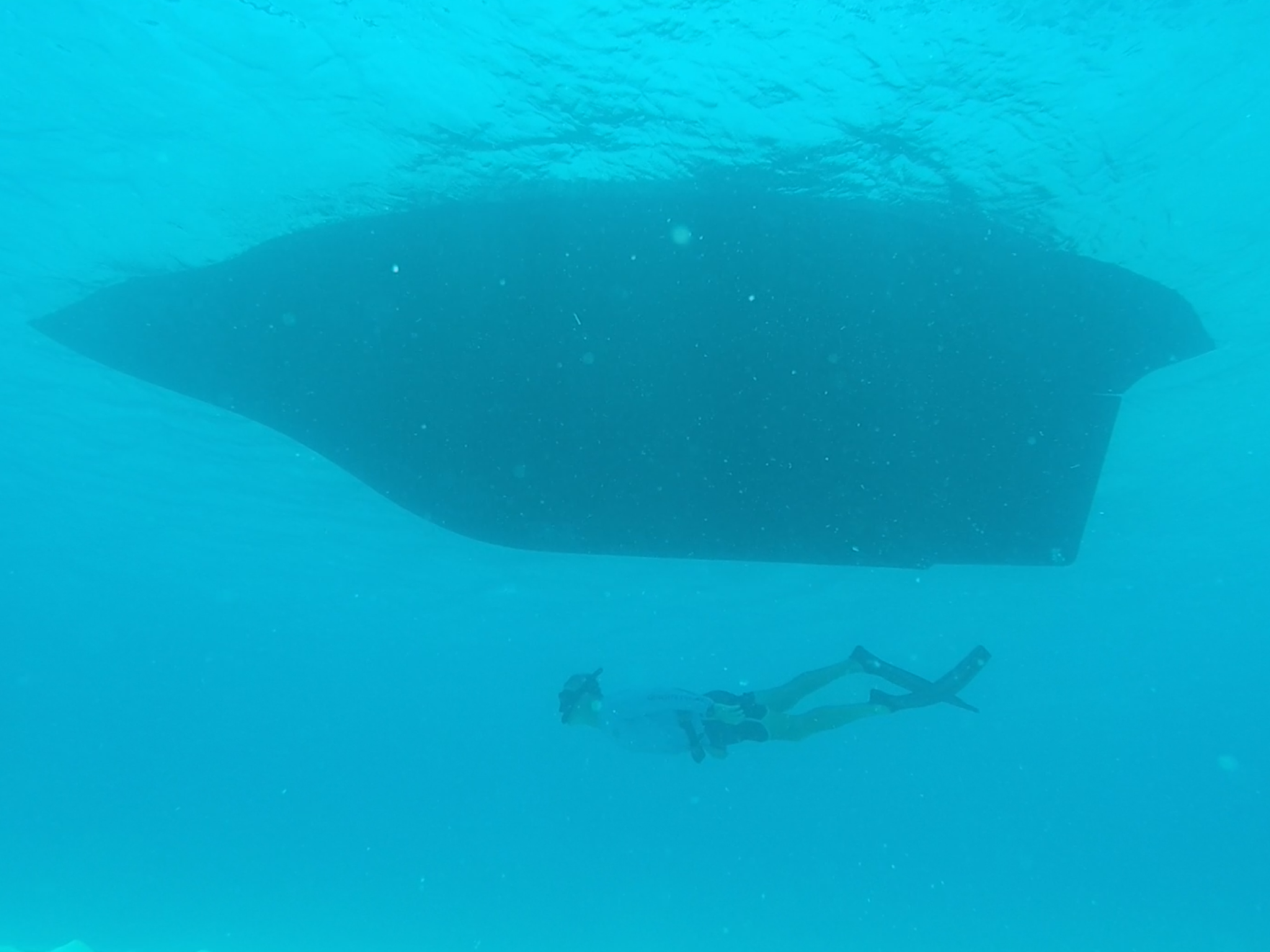 The cook served lunch—an apple, Brie, and crackers. Then, it was into the water where I spent about an hour and a half scrubbing the bottom followed by snorkeling around fish island. The underwater visibility was very good due to all the light winds we have had lately.