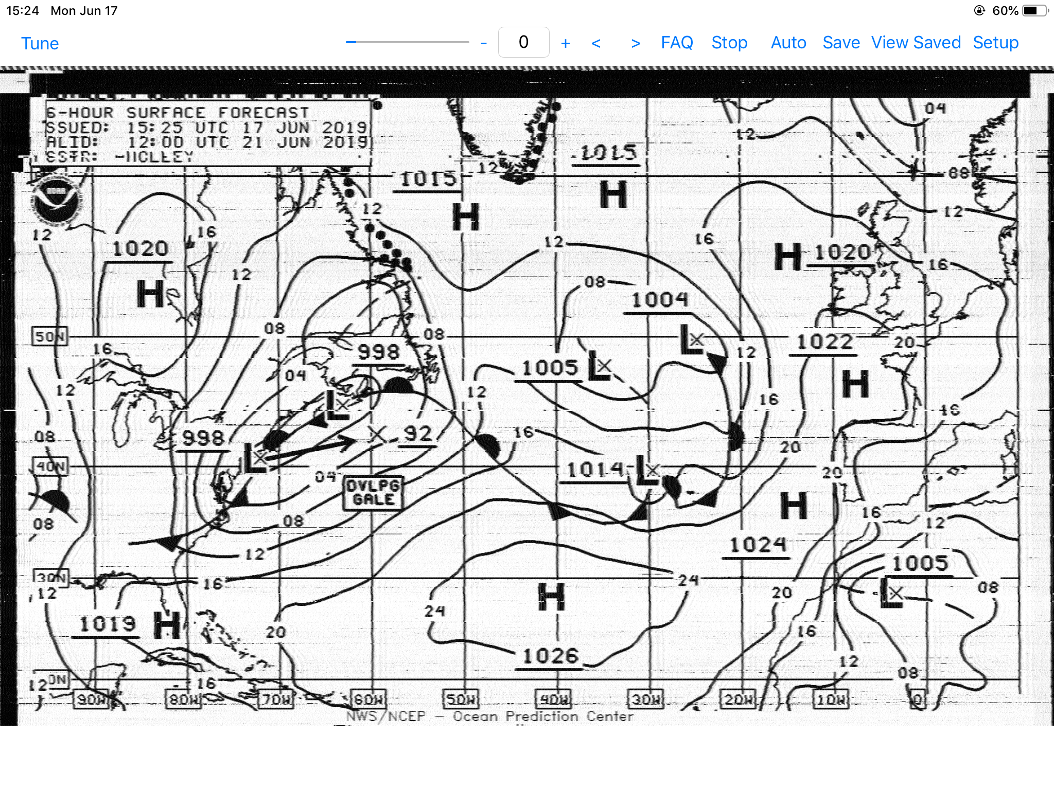 We had some great sailing covering about 130NM. But, on one of the evening broadcasts Chris Parker gave me some excellent guidance: “Don’t go north of 28° before Wed 19 June, north of 30° before Thursday, north of 32° before Friday.” That strategy served as the base plan for the rest of the voyage. To meet those timelines I needed to head north right away. So, less than 30 miles from the Abacos we turned around and headed back north.
