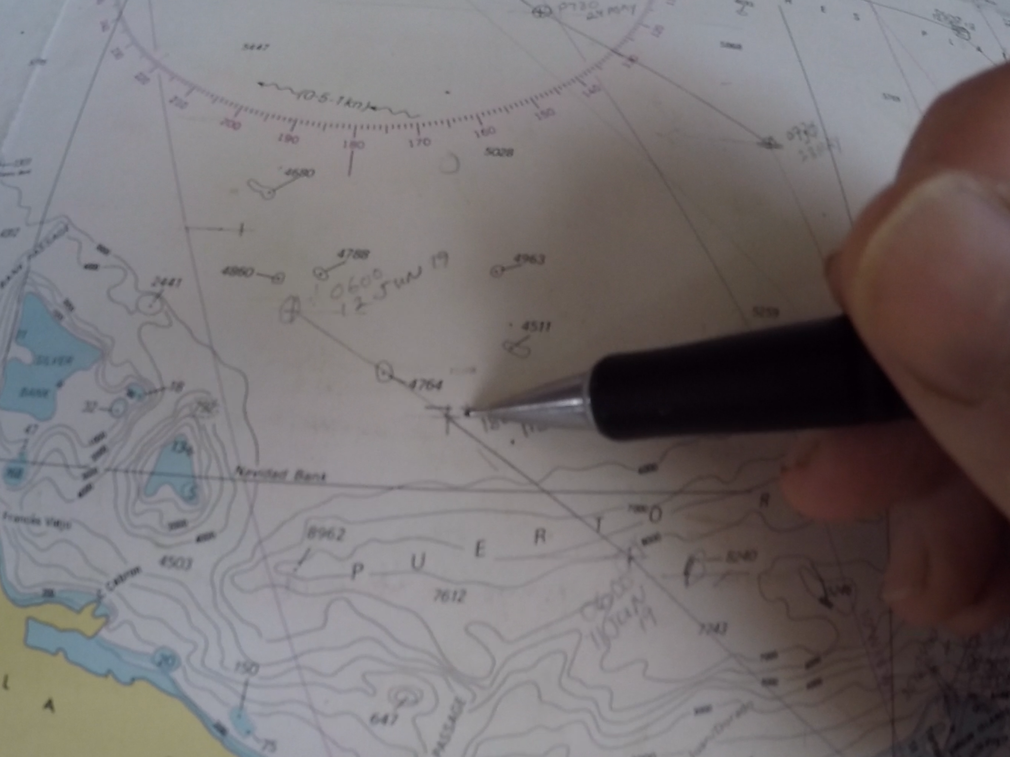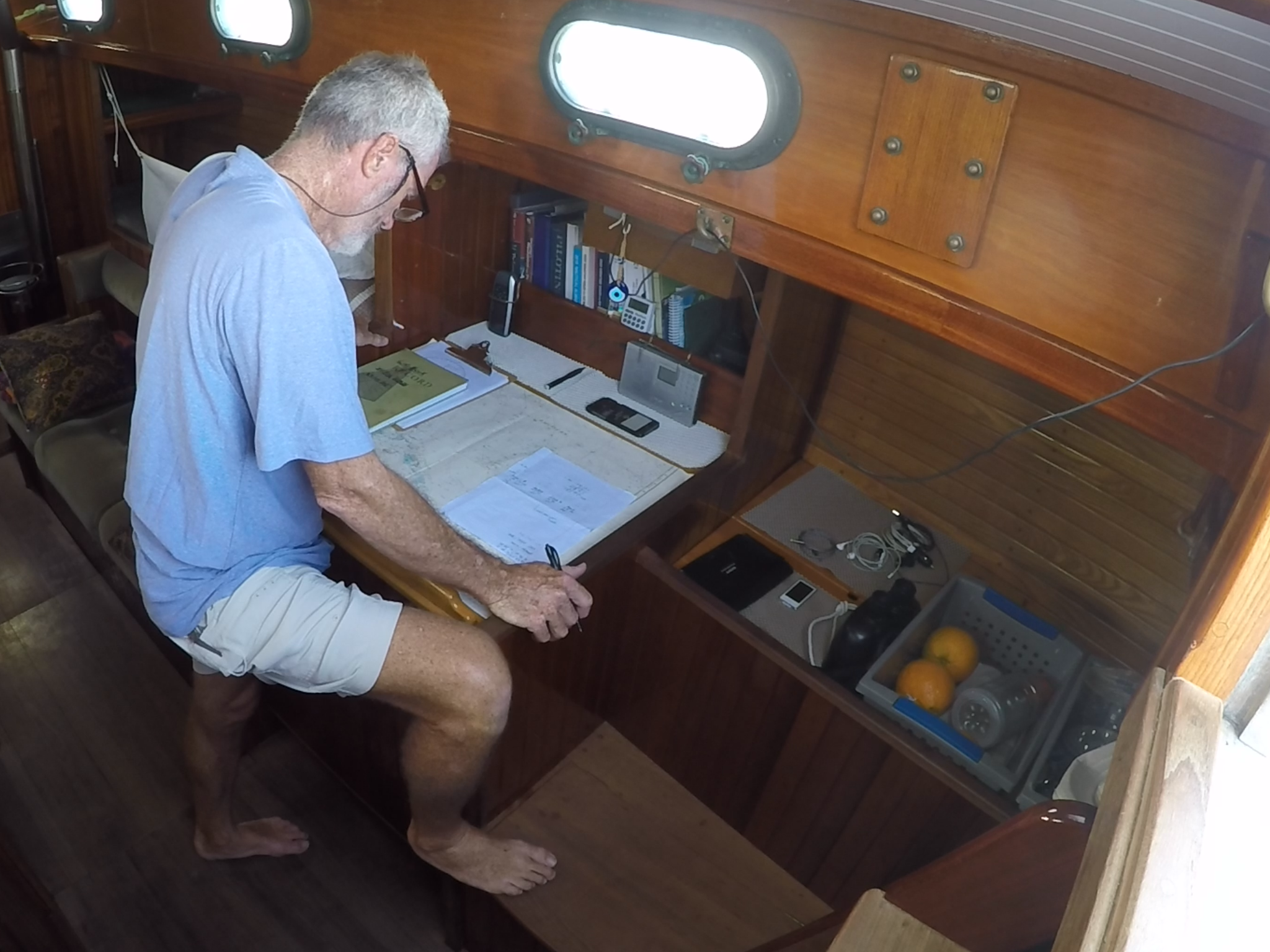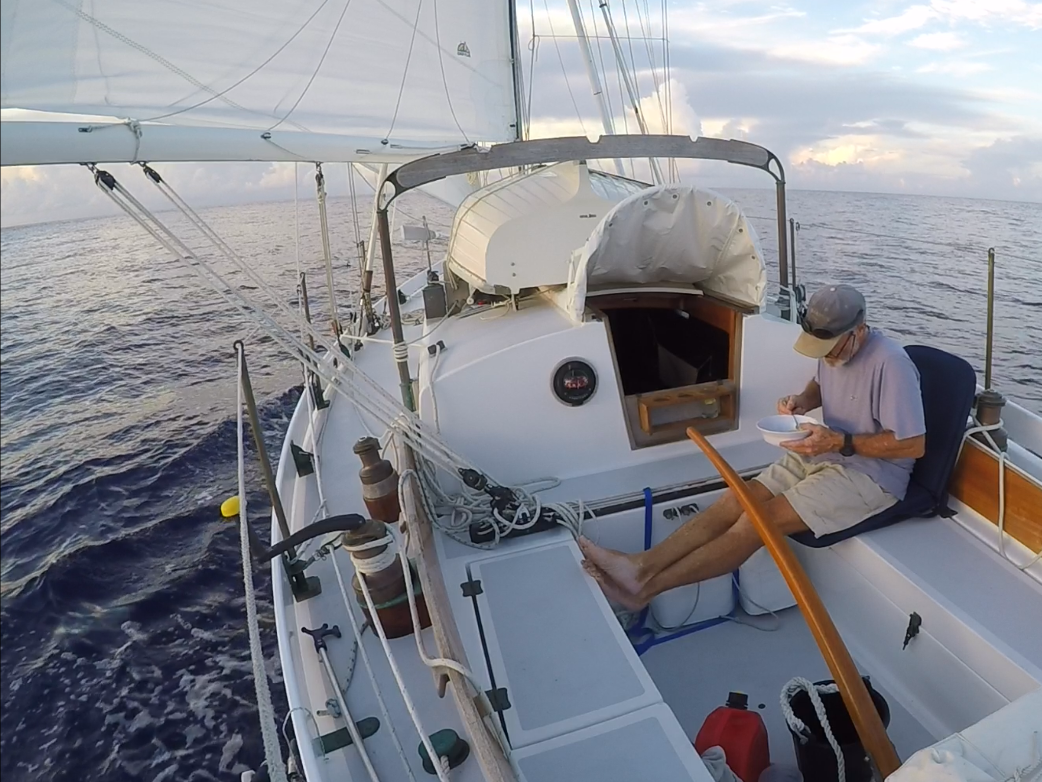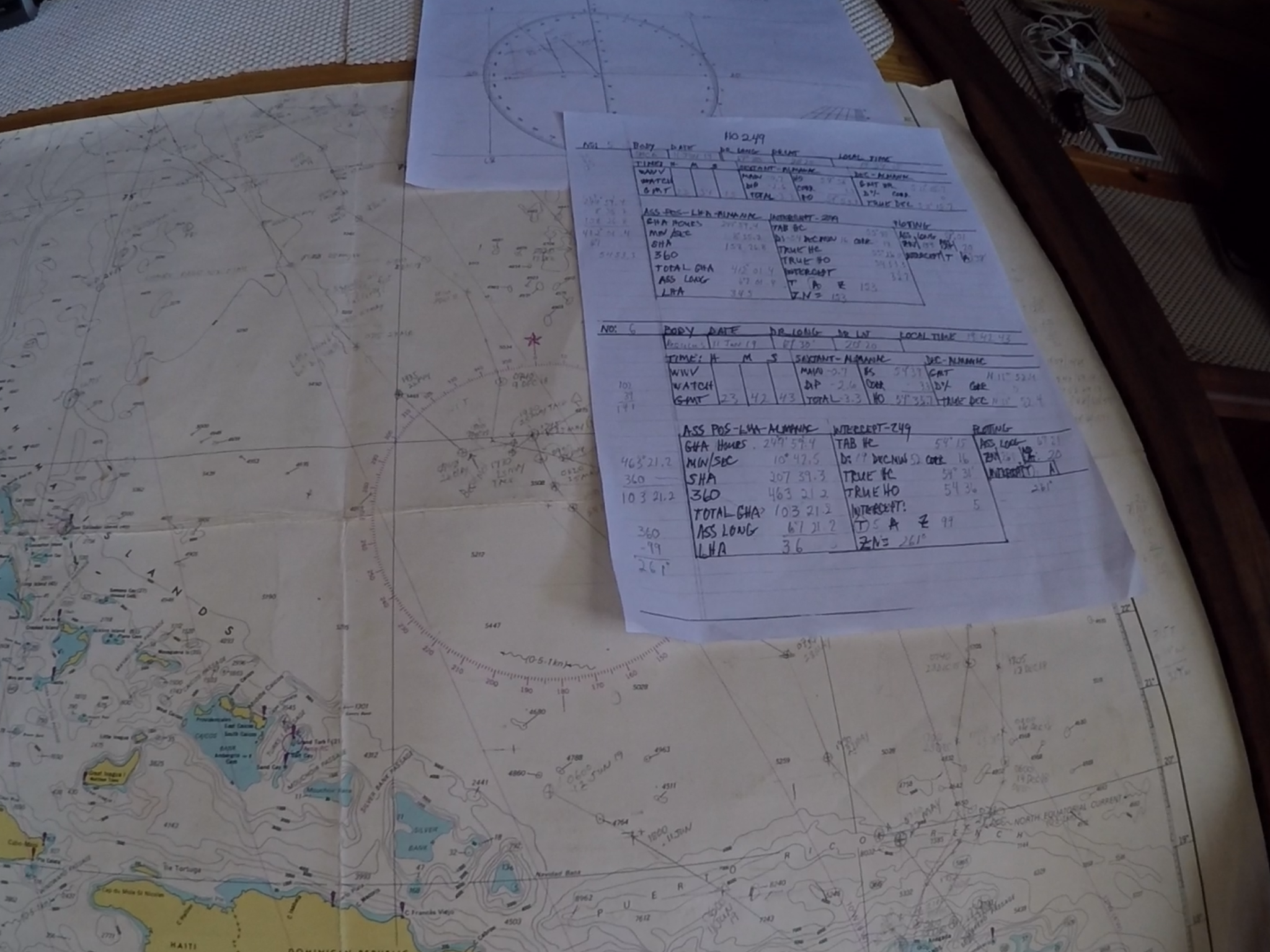 During the first half of the voyage I practiced my celestial navigation by taking a round of star and planet shots when the sky was clear. The accuracy was good, within three miles of my GPS fix, but I felt I could do better. I used HO249 and was impressed by what I had learned on my own in a relatively short amount of time. My determination to use celestial waned a bit as I grew more fatigued due to lack of sleep and what may have been a minor break out of the shingles virus. We also experienced significant cloud cover which reduced opportunity for star and planet shots at dusk. That’s part of the drawback of technology. It’s easy to let go the primacy of more difficult but rewarding traditional skills for the instant gratification of GPS and associated gadgets.