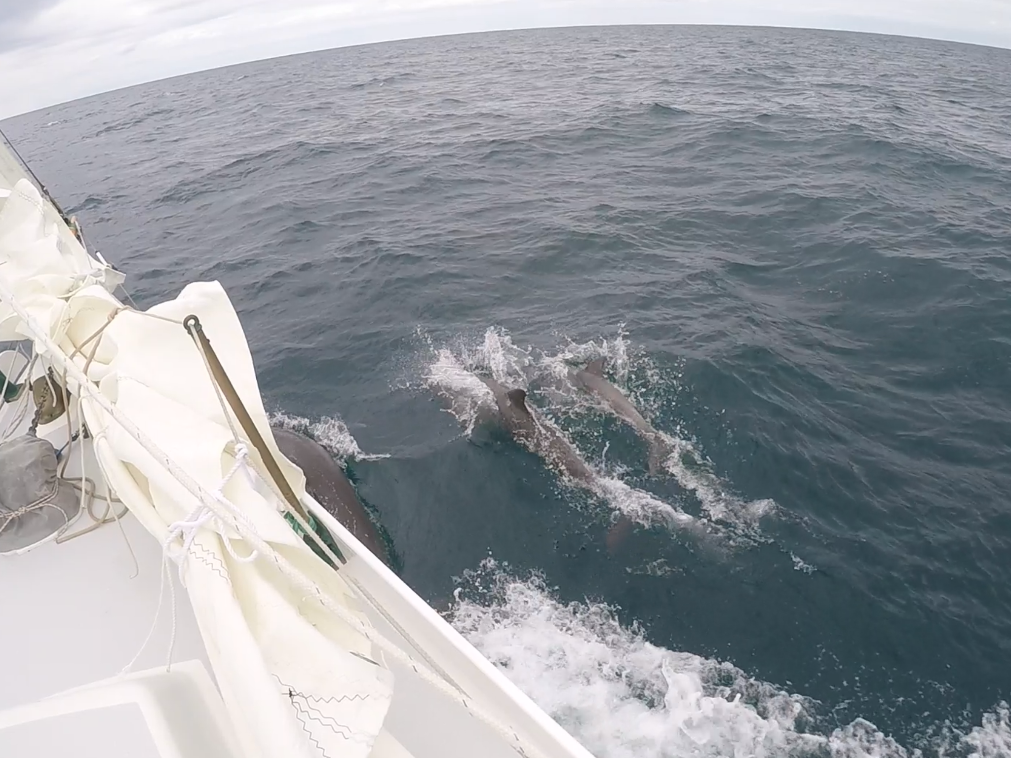 We had a day or so of light and variable winds. We saw more lightning to the NW. We chatted via VHF with a 981’ tanker, the Shinshu Maru. He reported he had us on AIS and radar at 8 miles away. The seas were rolly due to the wind storm to the north of us. Eventually, the wind came up and we made good time once again.