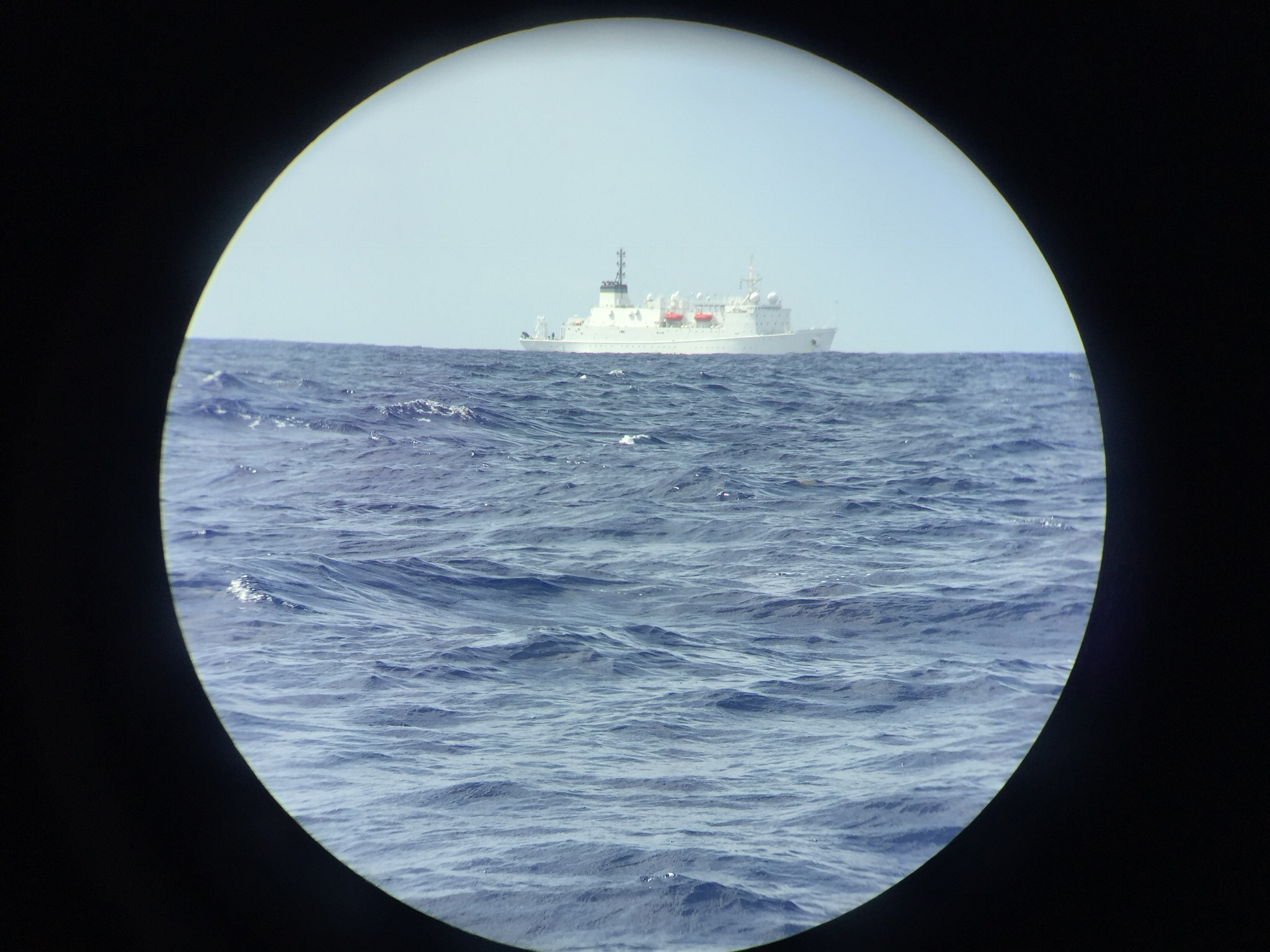 I saw a lot of ships and a few sailboats on this passage. Early in the trip I passed a 200’-250’ ship holding station dead still. She was pointed straight into the wind. She was not transmitting on AIS. I saw no signs of life. I passed down the port side maybe a mile away. She appeared to be some kind of government research ship. She was displaying two black balls and a diamond from her signal yardarm indicating she was “restricted in her ability to maneuver.” Very strange.