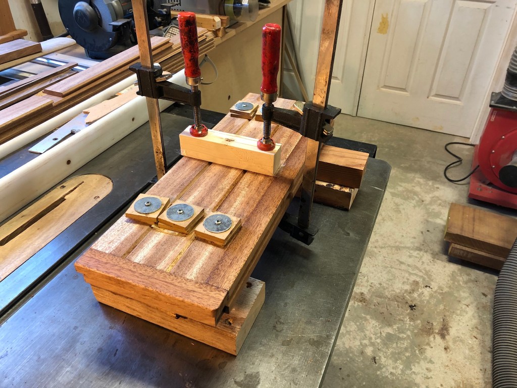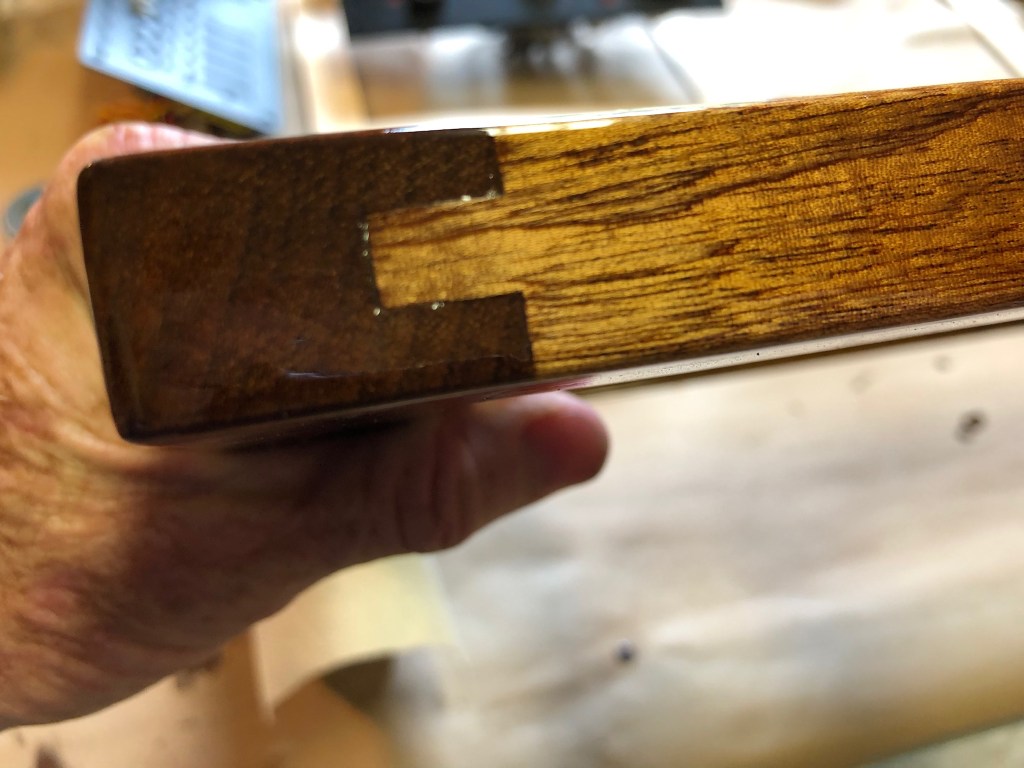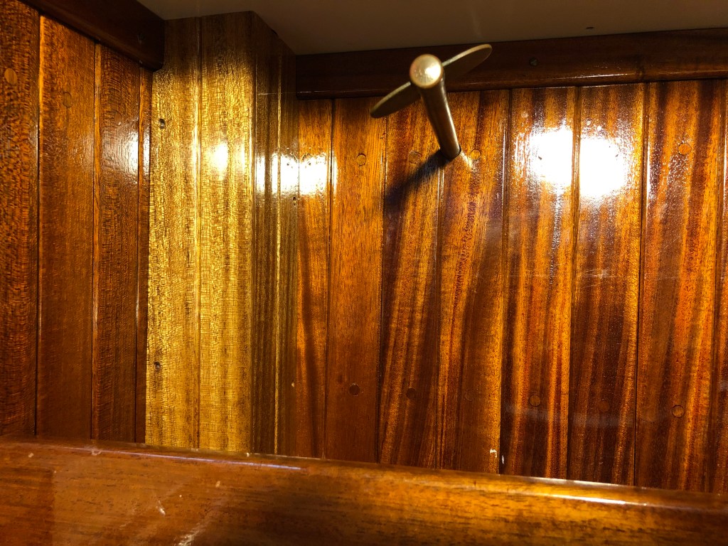 A thought I want to offer to those reading this post is you can complete projects like this without spending a whole lot of money. It is far less expensive to make things yourself than pay some one to do it. With patience and practice you can produce far better results than the average “tradesman.” The mahogany I milled for the rails and stiles cost about $15-$20. The walnut about $10. My labor was free. It would probably cost $300-400 to pay someone just to fabricate the panel and glue it up. True, there is some overhead in tools, but not as much as you think. My labor is free. My time would have been wasted watching TV or staring blankly at you tube or Face Book. It is the same philosophy I used to rebuild the Far Reach. I produced a wonderful boat for pennies on the dollar. Maybe it’s disingenuous to suggest anyone can do it, but I think most people can if they want to badly enough. Being able to rebuild, modify, or visualize what you want and then make it to a high standard is liberating and thrilling. So if you have the desire, I encourage you to break the bonds of being a consumer and beholden to those that seek to separate you from your money and present you with an inferior product.