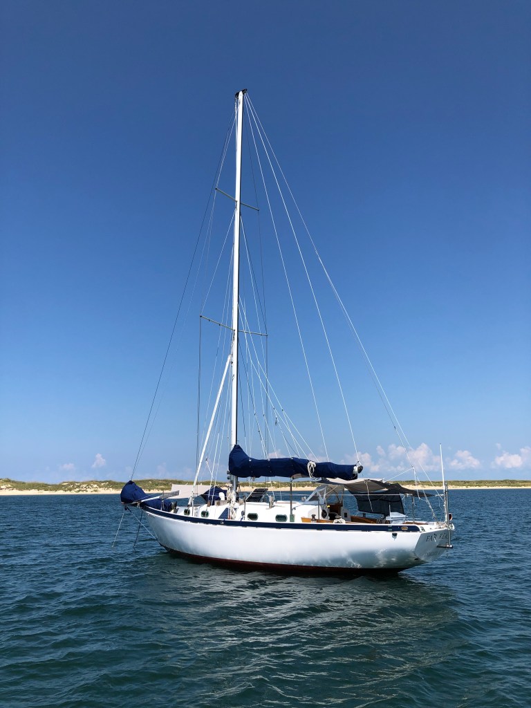 I spent the days anchored in the wonderfully protected Cape Lookout Bight. I did a little swimming, launched and recovered Sweet Pea, our 9′ Fatty Knees hard dinghy we have had for 18 years, and generally reacquainted myself with the Far Reach after she had sat on the hard for nearly two years.