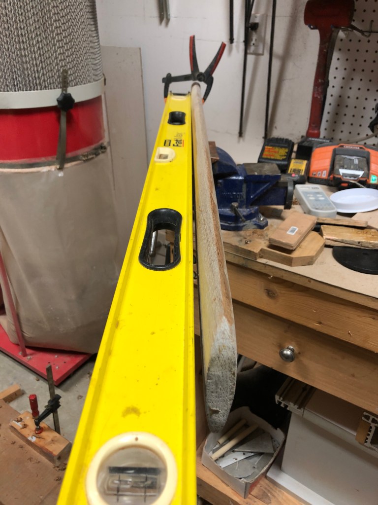 I could not find a culprit and was stumped. I put it back together, reinstalled it on the boat, and went for another light air sail. It still would not hold a course in winds under 10 knots. Yves and I discussed it some more through email. I sent a couple videos of the vane under sail. I was getting frustrated. Then eureka…the problem was revealed. Yves figured it out. It was so simple and obvious I should have seen it right away, Occam’s Razor and all that. When I told Yves the vane was behaving like it wanted to turn left all the time he said “take the servo blade off and sight down the leading edge and see if it is warped.” That was exactly the problem. The blade was warped about 5/16″ over its length. I had never noticed and stupidly it had never occurred to me. In light wind the warped blade was being pulled off to the right steering the boat to the left and the air blade could not overcome the more powerful force of water gripping the servo blade.
