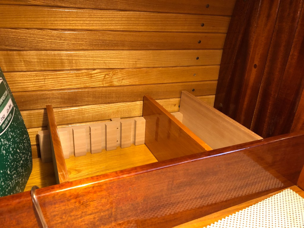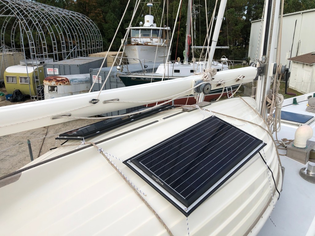 Though I had planned to relaunch her in late October it was not to be. There were some compelling personal reasons to wait until we were sure the planned voyage would in fact be possible. In the meantime I continued to complete a number of small projects on the Far Reach, such as building an adjustable divider system for my chart table book shelf; a custom moveable binocular box; fabricating a new solar deck connector; and upgrading my single 30 watt flexible solar panel that had served me so well for five years to two 45 watt Zamp Obsidian panels.