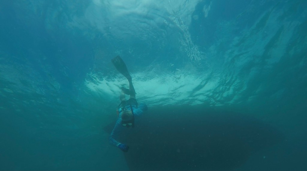 I swam as often as I could, usually at 1400-1500. Lunch was digested. The sun was high for good visibility and warmth when I exited the water. Sometimes I swam near the boat. Other times I swam to the closest reef from the boat. Occasionally, I would load my gear into Sweet Pea and row further afield if I suspected a promising site. Between daily swimming, rowing, and light calisthenics I remained very fit. My weight was down about 12 lbs for the entire sailing season.