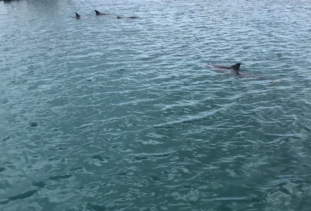 Once we were anchored in Brewer Bay, St Thomas and a bunch of swimmers and snorkelers were in the water. A pod of dolphins with a calf swam into the anchorage and began to swim along side and between the snorkelers. They rolled on their sides to be petted and stroked. It was fantastic to watch. I have never seen that in the wild but had read about it. We became friends with one of the swimmers and she was just over the moon about the experience. I bet.