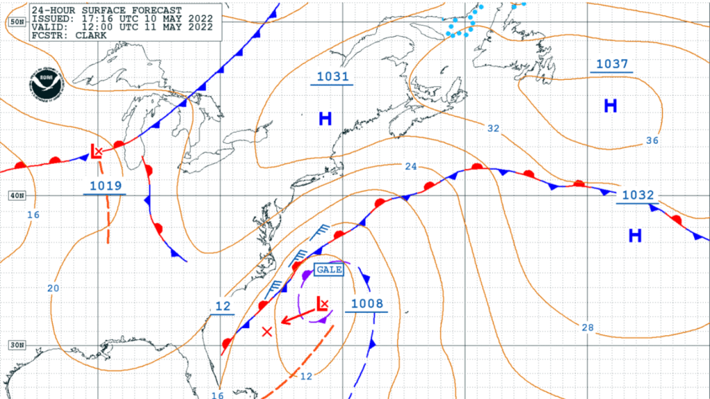 It looked like the end of the second week of May might bring a decent wx window for sailing home. The challenge is that while the trades are blowing strong in the VI just north of it along my route home to NC there is often no wind as a high pressure zone sits there in the spring. Eventually the high will lift north and the winds will fill in. If I leave too soon I will not have any wind on my route home. Also, if I approach the US southeast coast too early I can experience some really ugly continental wx systems. So the timing for a safe window is not that big.