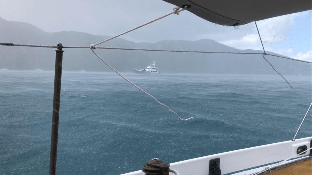From Brewer Bay we decided to sail back to St John. It was a great sail. It started off as 15kts then built to 25 g 30 with intermittent squalls. The ocean swells can build quickly on the south coast of St Thomas but once we got onto Pillsbury Sound where there was some protection from the ocean swell it was fast comfortable sailing.
